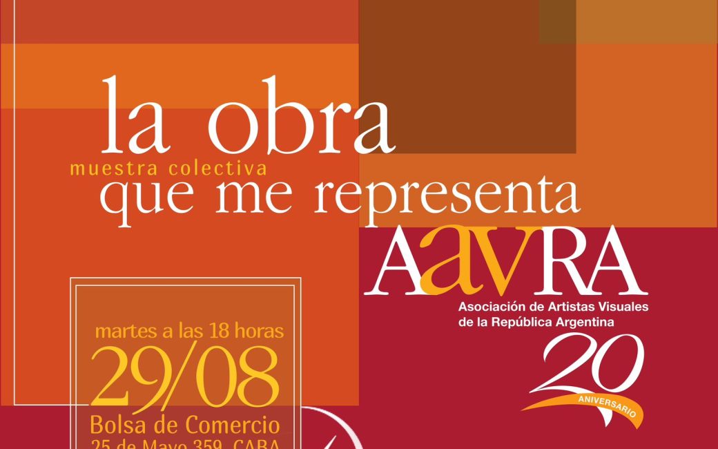 21/01/24 | Exposiciones AAVRA- Asociación Artistas Visuales de la República Argentina organizo para sus 20 años de actividad ininterrumpida: La muestra colectiva La obra que me representa En La Bolsa de Comercio de Buenos Aires 25 de Mayo 359Inauguración: martes 29 de agosto de 2023 18 horas Cierre: viernes 22 de septiembre de 2023Datos de la […]