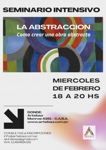 26/12/24 | Actualidad SEMINARIO INTENSIVO DE VERANO: LA ABSTRACCION Como crear una obra abstracta. Prof. Silvina Baz. ABIERTA LA INSCRIPCION / Dias Miercoles de Febrero 18 a 20hs. 2025 info@artebaz.com.ar / CONTACTO